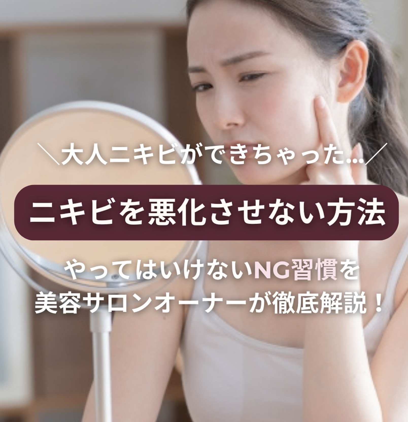 顔にできたニキビを触ったり、ファンデの厚塗りでニキビを誤魔化すと悪化する一方です🥲