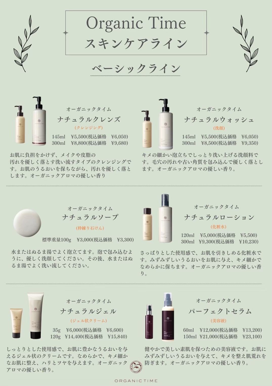 この元祖の化粧品ができてから数十年。元祖の化粧品にかけた想いやノウハウをもとに「オーガニックタイムシリーズ」も開発されました。